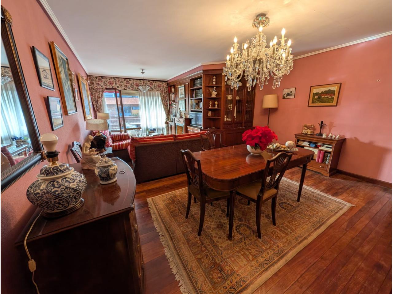 La vivienda cuenta con tres dormitorios, uno de ellos en suite y otro con acceso a una acogedora terraza. Dispone de un amplio salón comedor, sala adicional, cocina con office, dos puertas de entrada, dos baños completos y un aseo. La calefacción central está individualizada para mayor comodidad.